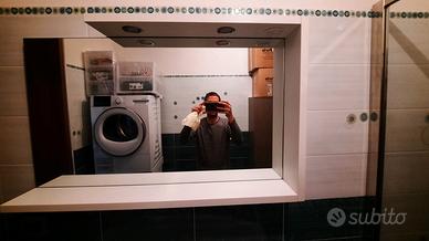 Vendo mobile bagno bianco comprato da cambielli edilfriuli e in perfette condizioni. Incluso specchio con ripiano e luci e rubinetto entrambi in condizioni ottime.