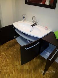 BASE P. LAVABO 2 ANTE L 99 + BASE LATERALE 1 ANTA L 36 + LAVABO L 105 VASCA LUNA IN MINERAL MARMO + SPECCHIO CORNICE VENATURE WENGHE L 90 H 60 + LAMPADA CITY QUADRATA SATINATA
