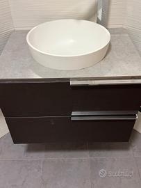 arredo bagno completo di lavandino e rubinetto con 2 casdetto e specchio con lampada a led. in buine cindizioni