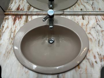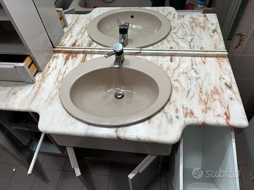 Vendo mobile bagno con pensile ,specchio armadietti vari , porta salviette , porta biancheria , lavandino ,piano in marmo rosa .