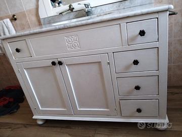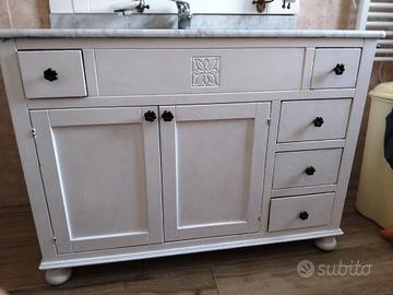 Mobile bagno in legno sbiancato, due gambine a cipolla e con 4 cassettini,