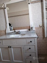2 antine, con portasalvietta portasapone e portabicchiere in bronzo anticato, completo di specchio con lampade a fiore e con piano in marmo di Carrara