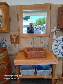 vendo mobile bagno in cedro del Libano con lavandino legno e resina con specchio e 2 cestini lunghezza 1mt vendo a 500 no spedizione telefono 3337446170