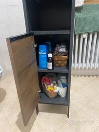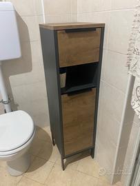 Vendo mobile colonna per bagno della serie San Diego di Lidl (Livarno Home). Design moderno e compatto in stile industriale, perfetto per ottimizzare gli spazi piccoli, grazie al suo design versatile si adatta bene anche a lavanderie o piccoli ingressi. Composizione: 1 cassetto superiore a scorrimento fluido. 1 vano a giorno centrale (ideale per profumi o asciugamani). 1 ampio vano inferiore con anta (ripiano interno regolabile). Materiali: Rivestimento in resina melamminica (resistente ai graffi e all'umidità del bagno). Maniglie e piedi in metallo nero. Dimensioni: circa 32 x 115 x 30 cm. Usato ma in buone condizioni senza imperfezioni prezzo trattabile