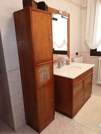 Mobile bagno in legno composto da una base lavabo misure cm 100/83/60 con top in marmo spessore cm 3, lavandino in ceramica, miscelatore monocomando, colonna cm 40/179/33 e specchio cm 80x105 con applique.