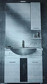 Mobile bagno sospeso CAMENTA, larghezza lavabo cm 85, profondità massima lavabo cm 50, larghezza mobile cm 81. Specchio altezza cm 110, completo di lampada alogena, presa e interruttore. Un mobile analogo nuovo costa circa € 2.000,00.