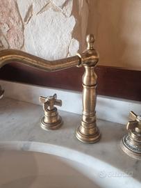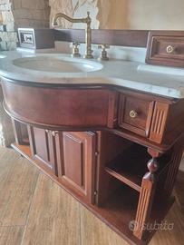 Mobile bagno in stile old english in legno massello e rifiniture bronzate. Piano in marmo. Inclusa rubinetteria Frattini bronzo.