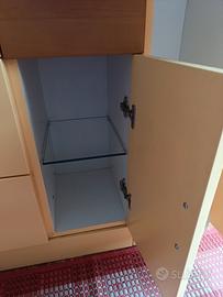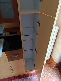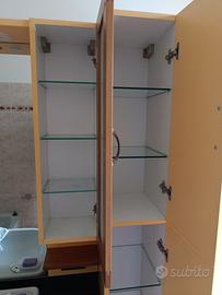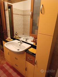 Causa ristrutturazione, vendo mobile bagno CERASA con colonna H202 cm completo di lavabo, laccato col. arancio con piano in vetro, lunghezza 155cm (da sinistra 35 + 70 + 25 + 25 cm), con specchio con faretti 105cn e pensile con vetro acidato H85 volendo regalo water e bidè e rubinetterie a 130€