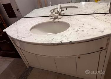 Vendo mobile bagno top in MARMO con lavabo integrato marca cesame completo di specchio Misure mobile Larghezza 129cm Profondità 62cm Altezza 83cm Misure lavabo incassato 50 cm Larghezza 36 cm profondità Condizione come nuovo Telefono 3427618175 Località Catania San Giorgio