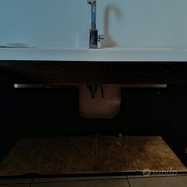Mobile bagno completo di specchio, rubinetto e pensile sospeso. Mobile artigianale realizzato da un falegname. Misure mobile 101 lunghezza x 41 larghezza. Pensile 69x 32