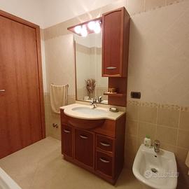 Vendo mobile bagno color ciliegio, misure 85×50×195 completo di rubinetteria e lavabo in marmo. Ottime condizioni tranne x il fianco DX che presenta qualche imperfezione causa piccole infiltrazioni di acqua nel legno come da foto allegate. Prezzo trattabile.