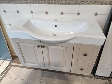 Mobile bagno "Classico contemporaneo" PROMO. Misure del mobile : L.95, P.48, H.50. L'articolo comprende : mobile da bagno sospeso con due ante e due cassetti, lavabo console e specchiera con cornice lavorata. Il rubinetto non è compreso nell'offerta. Articolo nuovo in promozione subito disponibile, unico pezzo unico modello. Promozione : da 1279,00 a 989,00 euro.