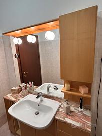 Mobile bagnocon piano in marmo rosa portogallo, completo di lavandino e rubinetteria