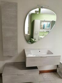 Causa svendita, svendo mobile bagno completo come composizione in foto, color grigio chiaro effetto pietra, base portalavabo 1 cassetto da 85cm con lavabo integrato in mineralmarmo, cassetto inferiore stesse misure, posizionabile sia attaccato che staccato dalla base portalavabo, sia verso dx che sx, colonna sx 1 anta 35x120x21 , specchio a goccia e led. Nuovo. Ditta Italiana, Compab, Serie B-201