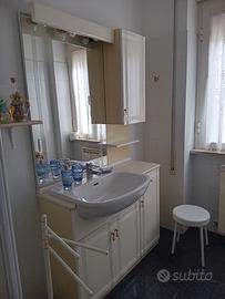 Accessori inclusi: mensole in vetro, plexiglas integrate, rubinetteria inclusa, sgabello e piantana poggia asciugamani.