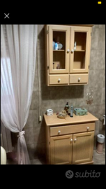 Mobile bagno completo di specchio con applique e vetrinetta sospesa Colore rosa antico stile shabby Per altre foto chiedere in chat