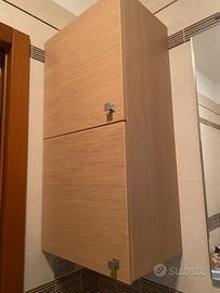 •Mobile lavabo sospeso in legno chiaro con doppia anta