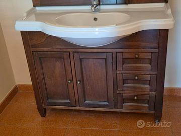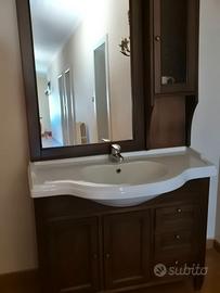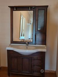 Mobile da bagno in legno massello completo di specchio con luci e lavabo