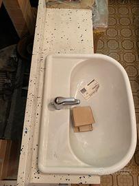 Vendesi mobile bagno completo, nuovo, mai montato e mai usato, ancora con etichetta adesiva fabbrica. Lavabo in ceramica e top in marmo. Larghezza 1.100 mm. Inclusa grande specchiera, nuova anch'essa, larghezza 1.100 mm. e altezza 1.100 mm. Prezzo trattabile.