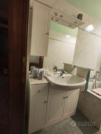 MOBILE BAGNO LACCATO BIANCO COMPLETO DI SPECCHIO, FARETTI E LAVANDINO CON RUBINETTERIA.