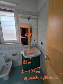 Mobiletto bagno verde acqua in ottime condizioni con ripiano interno in vetro. Piano in marmo Ampio Specchio di 1.15 m x 78 (solo in due punti - non grandi , in alto - leggermente opaco). Per info scrivimi