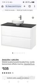 A malincuore vendo per cambiò progetto mobile bagno Ikea sospeso completo di lavandino e rubinetteria. Cassetti color bianco lucido top nero. Usato pari a nuovo come di vede in foto.Prezzo leggermente trattabile