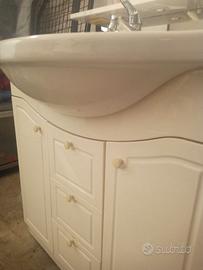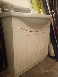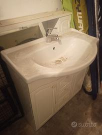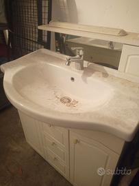 Mobile bagno con lavabo incorporato più rubinetto più specchiera con faretti
