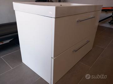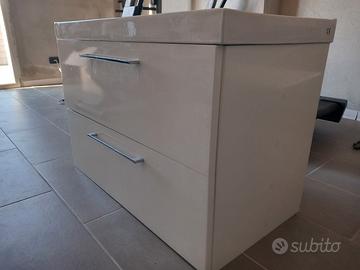 Mobile bagno colore bianco laccato, da installare al muro in sospensione, con 2 cassettoni contenitori. Lavabo incluso. Misure: 92x49 altezza 64. Non spedisco. Ritiro in zona Pastena, Salerno