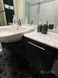 Vendo mobile bagno usato in buone condizioni generali, composto da: •base con cassetti •lavabo •top chiaro marmo •specchio •colonna laterale •vani contenitore Stile moderno ed elegante, capiente e funzionale. Colore VERDE SCURO LACCATO. Smontaggio e trasporto a carico dell’acquirente. base lavabo circa 120–140 cm, profondità circa 50–55 cm. Totale equivalente nuovo: circa 500–900 €