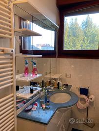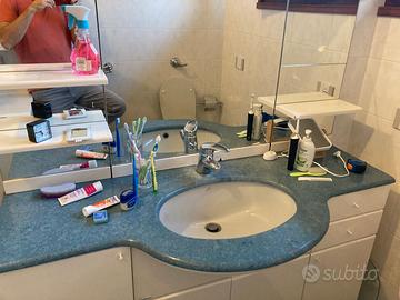 Mobile bagno Elledue con top in marmo, due cassetti, 4 ante, 5 mensole, luci integrate, miscelatore, lavabo
