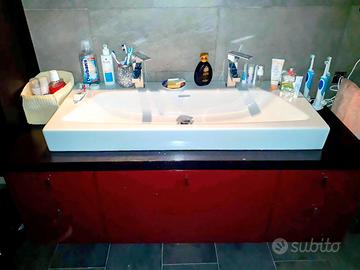 Vendo mobile bagno con lavandino doppio, compresa rubinetteria e specchio apribile, con mensole in vetro, luce interni ed esterna + l'attacco della presa elettrica.