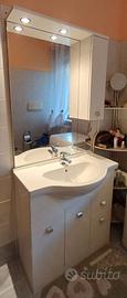 Mobile bagno tutto incluso in ottime condizioni, con lavandino, specchio, rubinetto e luci. Misure: lunghezza 82 cm, profondità max lavandino 49 cm, profondità mobile 36 cm, altezza con specchio 192 cm