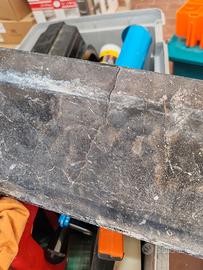Con il mobile è compreso anche il piano in granito (che presenta 2 piccole crepe, vedere foto). E' danneggiato come da foto, ma le crepe si troverebbero dietro al lavabo e una volta appoggiato e fissato sul mobile, non danno problemi. Il "buco" nel granito per il lavabo ha dimensioni 61,5 x 26 cm.