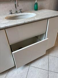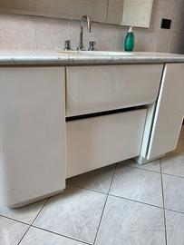Mobile bagno bianco con piano in marmo e vasca per lavabo Cassetti e sportelli bianco lucido 145x62x83 Ritiro a carico dell’acquirente Prezzo trattabile