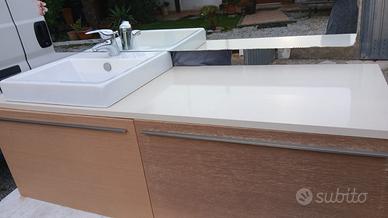 bel e capiente mobile bagno con piano in marmo , lavello con rubinetto e specchio con lampada a led , tutto in buon stato . possibilita di consegna . prezzo 80 euro , non trattabili . info solo al telefono . grazie