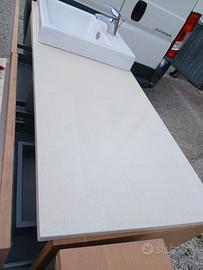 bel mobile bagno in ottimo stato con piano in marmo L 140 / 51 / h 47 , completo di : lavello con rubinetto , colona con piani in vetro L 35 / 23 / h 118 e un bellissimo specchio con lampada a led L 140 / h 59 . possibilta di consegna . prezzo 90 euro . info solo al telefono . grazie