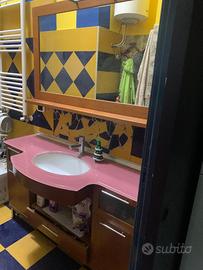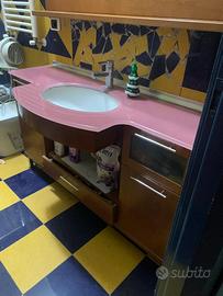 VENDO MOBILE BAGNO NOCE BASE D' APPOGGIO VETRO ROSA V-P-C LAVANDINO INCASSO SPESSORE 1 CM CON MOBILE 5 CASSETTI COME DA FOTO MISURE LUNGO 140 LARGO 40 CM ALTO 90 CM. COSTAVA 700
