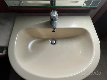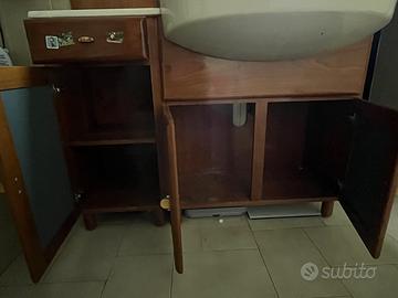 Mobile bagno specchiera con illuminazione incorporata stile arte povera con ripiano in marmo, lavabo in porcellana, ripiani laterali, un cassetto, 3 sportelli specchiati sotto il lavabo. Ottime condizioni. 250€ trattabili