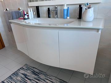 đ Vendo Mobile Bagno con Specchio - Ottimo Stato Vendo elegante mobile da bagno completo di specchiera, ideale per chi cerca una soluzione funzionale e di design senza spendere una fortuna. Il mobile è stato tenuto con molta cura ed è pronto per essere installato. Caratteristiche principali: â˘Dimensioni Mobile: [121,5x42-52-42x50 cm] (L x P x A) â˘Dimensioni Specchio: [110x100 cm] â˘Materiale: [Legno laccato bianco] â˘Lavabo: [In vetro temperato da appoggio] â˘Stoccaggio: [3 ante con ripiano interno] Dettagli aggiuntivi: â˘Condizioni: Usato in ottime condizioni, senza graffi evidenti o rigonfiamenti dovuti all'umiditĂ . â˘Accessori inclusi: Specchio coordinato [lampada LED integrata / miscelatore incluso]. â˘Colore: [Bianco lucido]. ________________________________________ đ° Prezzo: [150] ⏠(Leggermente trattabile se ritirato in tempi brevi)