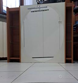 Vendo mobile per bagno con specchio in legno color noce, compreso di faretto. Misure 95x80x15. Quattro ripiani interni in vetro. Prezzo trattabile