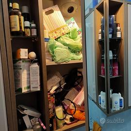 Mobile Bagno con specchio/contenitore (larghezza 135 cm - altezza 75 cm - profondità 16 cm. Mobiletto Bagno (da terra) (larghezza 30 cm - altezza 83 cm - profondità 34 cm.) Prezzo di vendita: 125 EURO