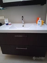 Mobile bagno sospeso (cm 102 e P. cm 48) capiente con due ampi cassetti e con specchio contenitore per riporre piccoli oggetti , rubinetto di design a canna