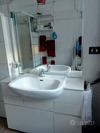Mobile bagno 106x80hx35 max lavello in ceramica 55cm - piano in marmo due cassetti e tre sportelli in discrete condizioni . Completo di specchi da100x110 Ritiro sul posto