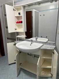 Vendo mobile bagno con specchio e cassetti come da foto, è compreso anche il lavandino e il miscelatore. Buono stato. Possibilità di trasporto e montaggio con sovrapprezzo.