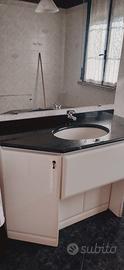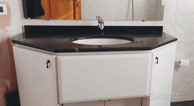 Mobile bagno laccato bianco, con lavandino (senza rubinetto). Specchio grande e piano in marmo nero. E’ in ottime condizioni. Misure : cm 134 larghezza - cm 60 profondità. Specchio: cm 104 altezza, cm 130 larghezza.