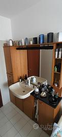 Mobile in legno noce per bagno compreso di apparecchio illuminante integrato e specchio. Piano in marmo nero e lavandino color champagne in semincasso. Dim. Largh. 1,65 m -prof. 58 cm, H. 1,92 m. Solo ritiro a Milano zona San Siro-Forze Armate Prezzo 140 euro