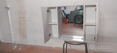 mobile bagno con due ante a specchio dotato di 2 luci. ingombri larghezza 77 cm e altezza 57 cm