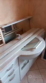 Mobile bagno con specchiera, piano in granito in ottime condizioni largo 140 cm profondo 50 cm