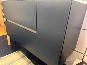 Vendo mobile bagno senza lavabo solo mobile comprato 1 anno fa da deghi pagato oltre 300€ vendo per cambio colore piccola scheggiatura nellangolo anteriore in basso a dx risolvibile con un colore blu e il cassetto superiore a sx leggerissima scollatura nellangolo come si vede dalle foto ma risolvibile con una bacchetta angolare in alluminio satinato che lo rende piu elegante misure larg 100 x altezza53x profondità 46 il prezzo ne tiene gia conto dei 2 difettucci solo ritiro a mano