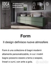 Mobile bagno design, IDEA GROUP, modello Form, dimensione mobile 160 cm., colore grigio, nuovo mai usato. Completo di due lavabo rotondi, 40 cm., colore bianco, completo di piedini, 2 rubinetti, cassetti e tutto il necessario per il montaggio.
